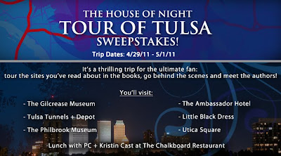 In an effort to celebrate the release of Awakened, the powers that be at St. Martin’s Press is offering a fan and their guest a chance to tour the sites from the House of Nights series in Tulsa, Oklahoma. How amazing is that? Not only will the winner get to tour the sites from the series but they’ll get to have lunch with the authors as well.