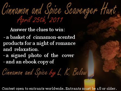 The winner of my CINNAMON AND SPICE Scavenger Hunt is Ronnie Halvorson. Congratulations, Ronnie!