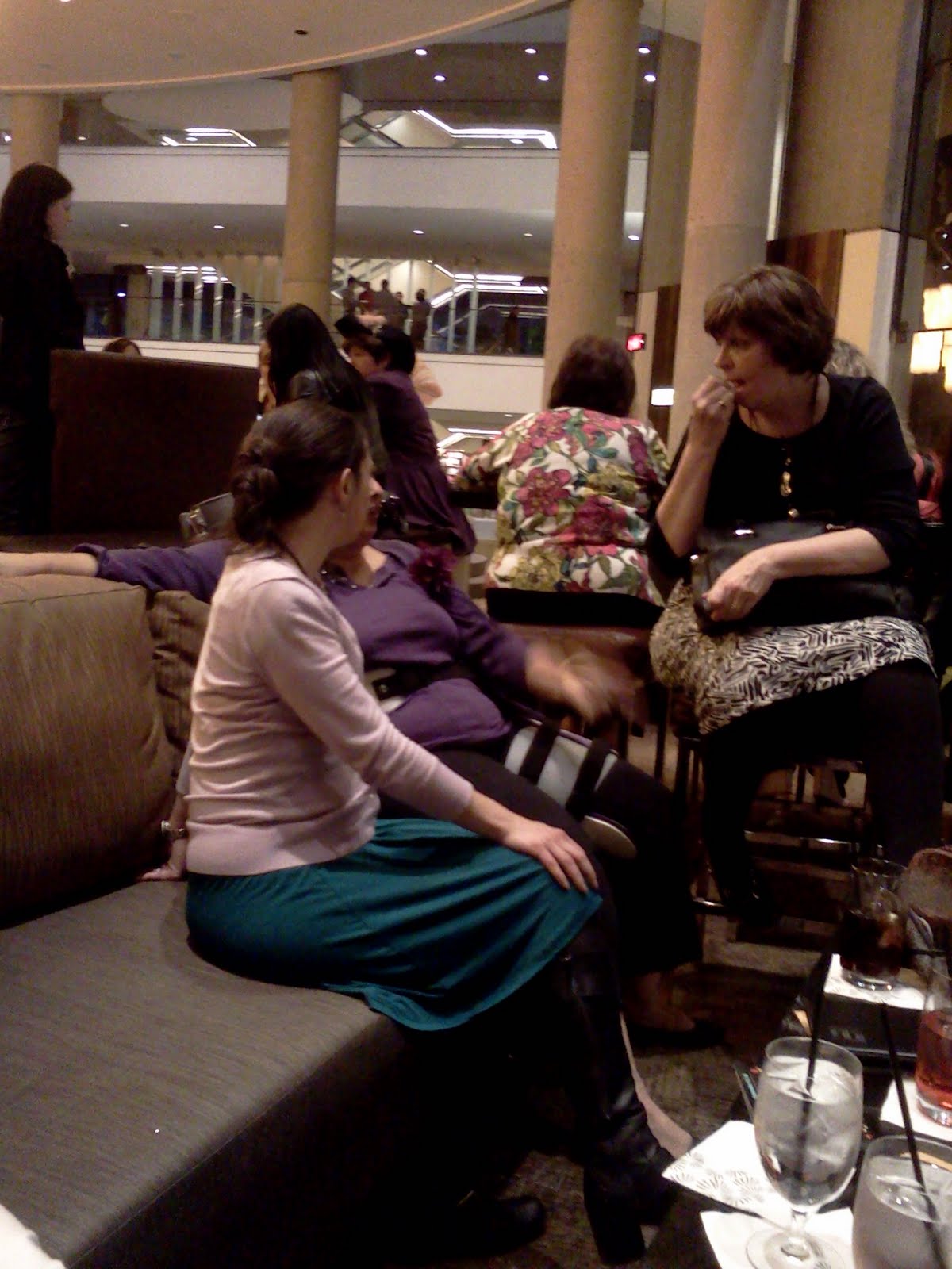 It was, as always, awesome to chat with all of you. I was looking through the pictures, and realized the second one, with you, Julie and Jane on the couch? Yeah, that's my zombified face behind your head! yikes. As for the group pic with the unidentified, on the floor with our backs to you are me, Terry-Kate (sp?) from RITBS, and James Buchanan, if I remember correctly.