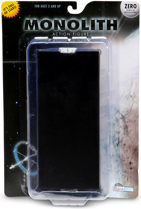 Deep in the heart of Aisle 7 (the action figure aisle), all throughout the 70’s, 80’s, and 90’s, something waited. No one knew it was there, until toy stores began their turn of the century renovations. Then the Monolith Action Figure was discovered. What was it for? Where did it come from? Why wouldn’t its barcode scan? No one knew. And no one knows to this day. (source: Thinkgeek.com)