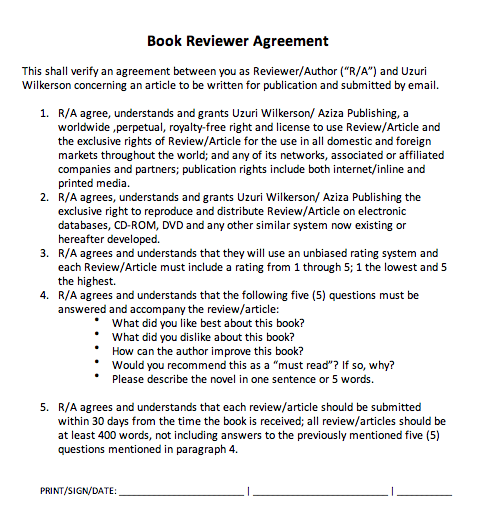 Holly: Jackie (aka Insane Hussein) put up a copy of a review contact Aziza Publishing, a company I’ve never heard of before, is making their authors send out when requesting reviews from bloggers. The idea of a review contract isn’t too bad when taken on its own, but the fine print is enough to make me want to bang my head against the wall.