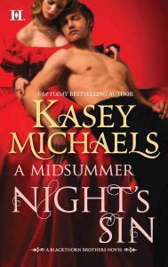 Next was A Midsummer Night’s Sin by Kasey Michaels was next and it was a really great book. Puck, the hero was so wonderful. I loved him to pieces. I loved his humor and his playfulness – just everything about him. The story was about Regina who goes to a masquerade ball and her cousin disappears. Regina was having an illicit kiss out in the garden with a man – who turns out to be Puck – and then can’t find her cousin. Puck and Regina then set out to find out what happened to Miranda and find that it may be white slavers that took the girl. During the course of the investigation Puck and Regina fall in love but how can they be together when Regina’s father wants to sell her to a title and Puck was born a bastard. I liked the story and can’t wait to read the next book about the Blackthorn brothers. 4 out of 5