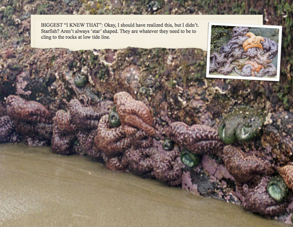 What a fun blog tour with some gorgeous photos of the places that you’ve visted. Clamming sounds messy but fun, and delicious. Never seen so many starfishes in one spot, and in a natural setting too. Only seen a few in an Aquarium.