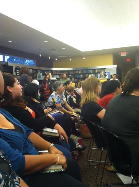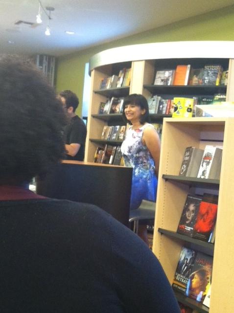 There was quite the crowd already gathered when we got there but it wasn’t hard for us to find seats.  Within minutes after we got there, the seats filled up and then there was only standing room left.  The area designated for the signing was pretty big and once Nalini walked in, she got down to business.