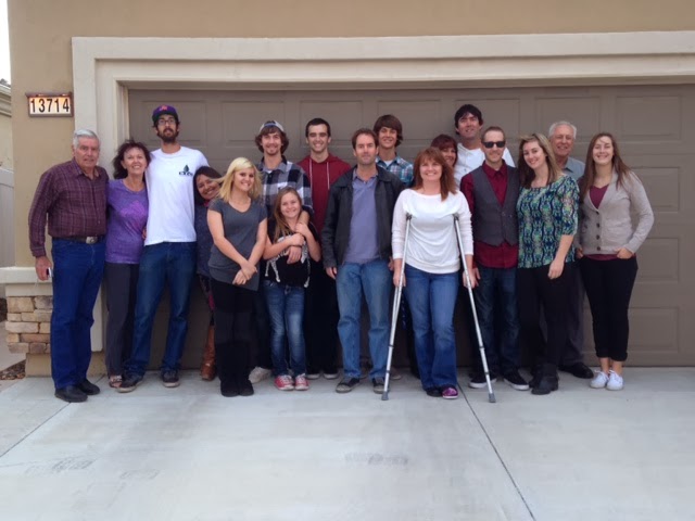 I hope you all had a wonderful Thanksgiving. My family and I went up to my in-laws which is about and hour and 15 min. away from us. We got to spend it with my in-laws, brother in-law, sister in-law, 6 nieces and nephews, a couple of their girlfriends and my sister in-laws father. It was a lot of fun and we had a great time. I love it when we’re all together as the kids just have so much fun together, no matter how old they get. That day was also the birthday of one of my nephews and my in-laws anniversary so it was a pretty big party. I really missed my family as they are ALL out of state now but it was still good. 🙂 Here’s a picture of the family that celebrated together (yes, we’re the “shorty’s” of the family):