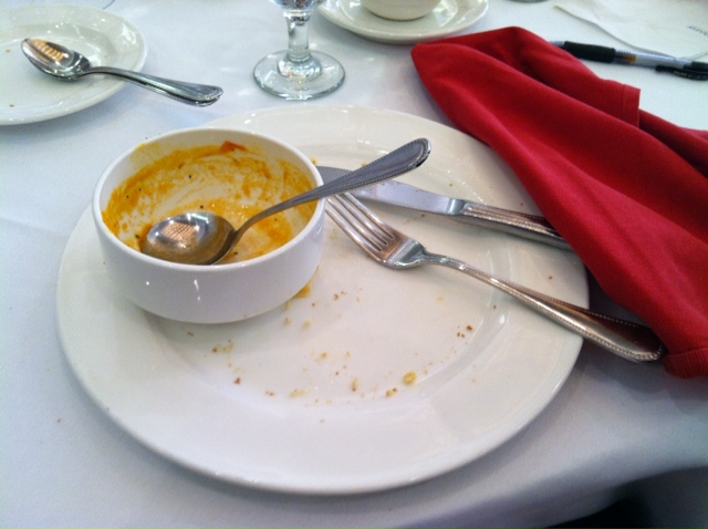 Before I inhaled that, it was a grilled cheese sandwich and tomato soup. It was fabulous, so much better than the rubbery chicken that people say they usually serve at these kinds of things so I was a happy camper.