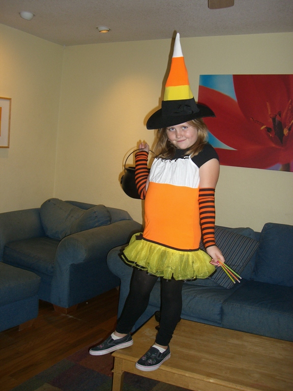 It was sad having to come home while all the girls were still at the house but RL called and I had to get back to my family. If I had been gone for Halloween I think my kids would have strung me up…my hubby would have too, I’m sure. As it was we had all of 3, yes THREE, kids come to the house for candy. We live on a hill so we never get a huge amount, but three? Wow. Here are my kids in their costumes. The oldest was a belligerent omg-do-you-really-have-to-take-my-picture referee and the youngest the ever popular candy corn witch.:)